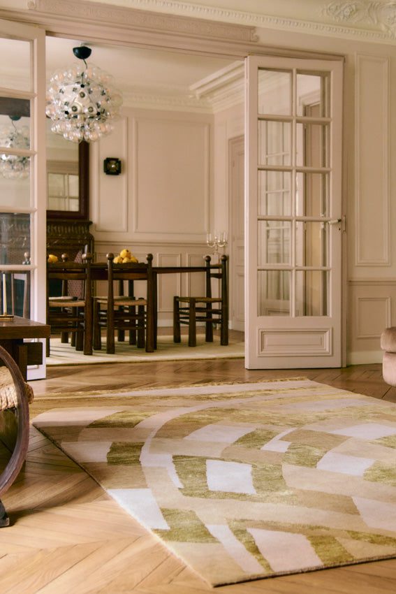 Le Byzance Or, création d’exception signée Léa Zéroil pour Toulemonde Bochart, réinterprète l’opulence des palais ottomans. Ce tapis brun en laine et soie végétale noué main incarne la rencontre entre l’artisanat traditionnel et le design contemporain.