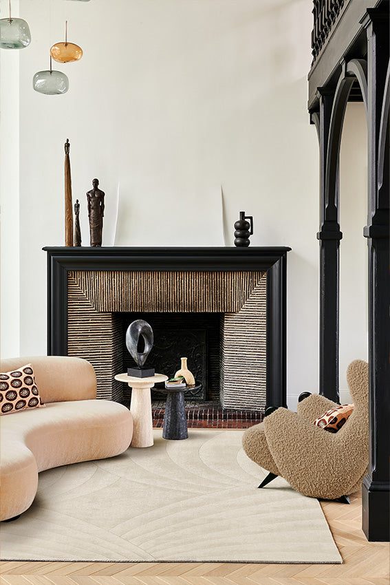 Available in round or rectangular formats, the Volute transforms contemporary spaces. In a minimalist interior, a sleek master suite, or a refined reception area, this rug becomes an architectural element that delicately structures the environment. Its ecru tones blend naturally with precious materials such as white marble, alabaster, or silver-plated metals.