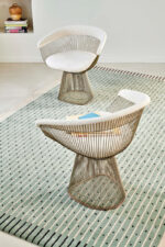 Upholstered in green wool, this rug stands out for its plush allure and spectrum of delicate shades, creating an aura of tranquility and elegant sophistication in any setting. Although its initial simplicity may deceive, its layout reveals a richness and precision in the care given to the finishes, a hallmark of Putman’s imprint, especially perceptible in the subtle play of colors along its boundaries.