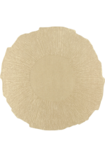 This wool and viscose rug, handmade and signed by Julie Fuillet, has an almost circular silhouette, evoking a flower with an irregular, scalloped outline. It elegantly reveals its design, where fine dotted lines, woven into smooth velvet, create a unique pattern. This model, imbued with a deeply feminine inspiration, stands out not only for its innovative graphics, but also for its timeless shades. Available in black and white for a striking Art Deco effect, as well as beige in a tone-on-tone version, this rug can fit harmoniously into a variety of decors, whether in a conversation nook or boudoir bedroom. Its maintenance is also easy, requiring regular brushless vacuuming and deep cleaning by a professional every four years, depending on its use.