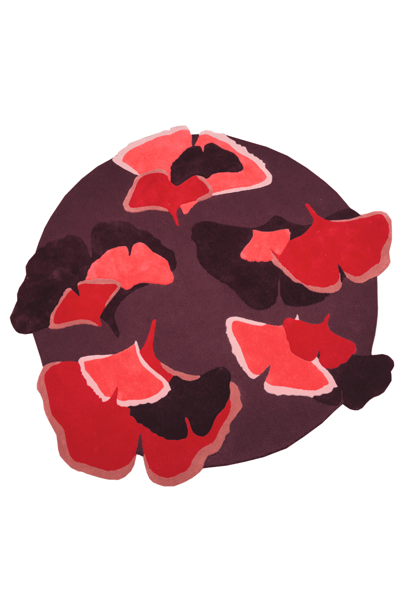 The Gingko rug stands out for its delicate arrangement of colors and textures. Tints of opera red intertwine with finely crafted patterns, creating an environment that is both poetic and sumptuous.