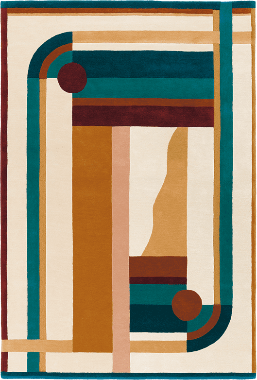 The Hacienda Multi pattern, designed by Florence Bourel, draws its inspiration from a trip to Mexico. There, she was struck by the vivid colors and bold architecture of Luis Barragán. This multicolored hand-tufted wool rug captures this vibrant energy by playing with precise lines and softer curves. Each section of the rug seems to recall a corner of this Mexican landscape, creating a balance that is both dynamic and harmonious. It’s not a rug that goes unnoticed, but it doesn’t try to overdo it either.