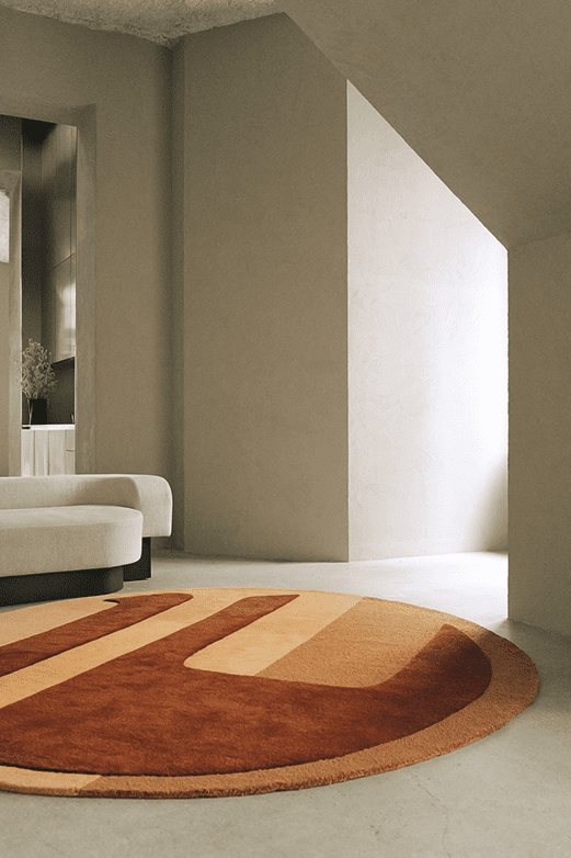 The Nucleus Noisette is a hand-tufted brown wool rug that stands out with its warm tones and organic shapes. Inspired by the bold design of Verner Panton, this rug combines a modern aesthetic with a touch of comfort. The camel hues, divided into three shades, provide a visual richness that immediately captures attention. But this rug isn’t just made to be seen; it’s also designed to be felt. The touch is soft and pleasant, adding an extra dimension to the experience of those who walk on it.
