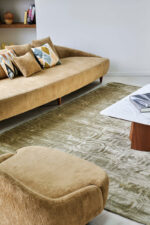 Chosen for its ecological virtues and its silky texture, tencel gives the Shaw rug a velvety softness and a refined luster. The green introduced by Shaw brings a breath of fresh air and vitality, promoting an atmosphere of rest and relaxation. The changing effect and discreet shine of the carpet reflect the light variations throughout the day, thus enriching the space with dynamism and depth.