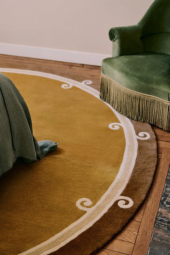 A warm expression of Sicilian heritage, the Syracuse Rond Tabac reveals a new facet of Léa Zéroil’s vision for Toulemonde Bochart. This round brown rug in hand-tufted wool reinterprets Mediterranean ornaments in a circular shape where the depth of tobacco enhances the architectural heritage.