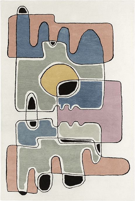 The multicolored hand-tufted wool and viscose rug, designed by Vincent Darré, is inspired by the artistic profiles dear to Jean Cocteau. For this designer, traveling around the Mediterranean is a source of pleasure that he cherishes, finding inspiration and joy in these escapades. However, loneliness has no place in his life. He prefers to be surrounded by friends, or more romantically, to share one-on-one moments, like this. Through his art of drawing and painting continuously, he expresses his desire to play with colors and graphic shapes, and this rug perfectly reflects this vision.