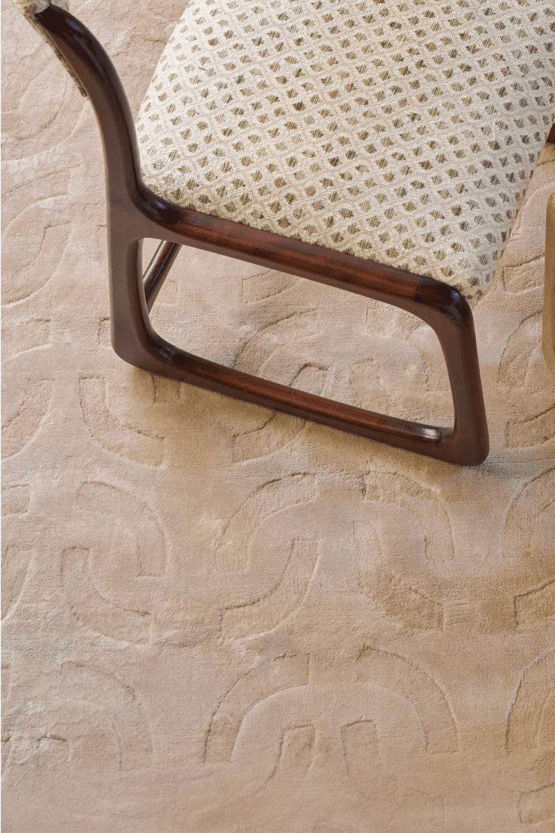 The use of tencel for the Wilton rug was carefully considered. Known for its silky-soft texture and distinct shine, this material gives the rug a luxurious look and superior comfort. Beige, a symbol of calm and peace, creates a neutral background that harmonizes easily with various color palettes, enhancing the atmosphere without weighing down the space. This rug invites you to rediscover the charm of simplicity, transforming every detail into a piece of artistic expression.